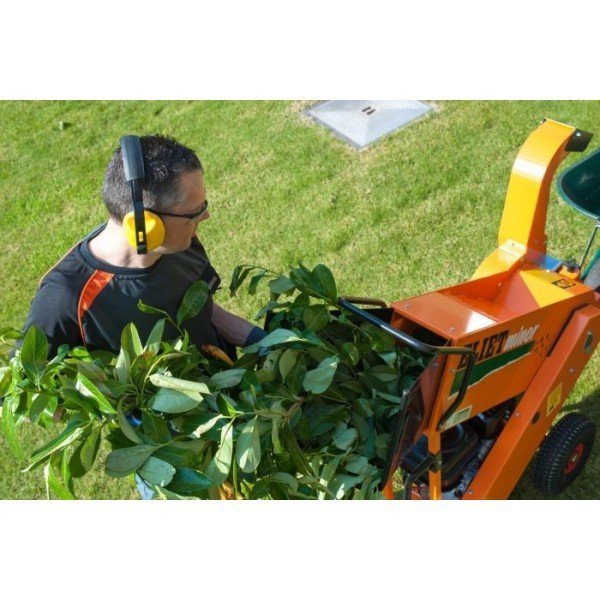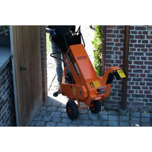 Evacuation des copeaux en hauteur permettant de remplir une brouette ou une remorque, machine compacte et maniable