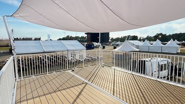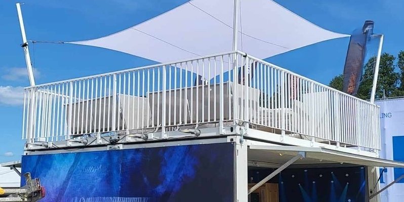 Conteneur événementiel extensible 2x20DV avec terrasse sur le toit