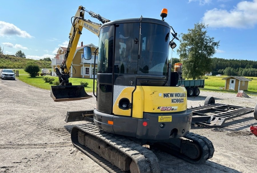 Mini-pelle d’occasion New Holland E50B SR (2012) – 5,1T + Remorque