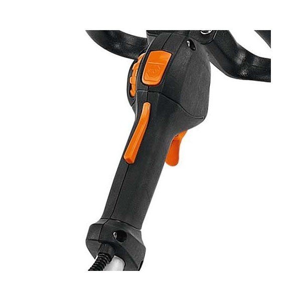 Nouveau réducteur en magnésium, moteur 2T à balayage stratifié avec ECOSPEED pour une régulation du régime moteur lors de longues périodes de travail dans des zones sensibles au bruit, barre de coupe orientable à 145°, longueur totale 199 cm.